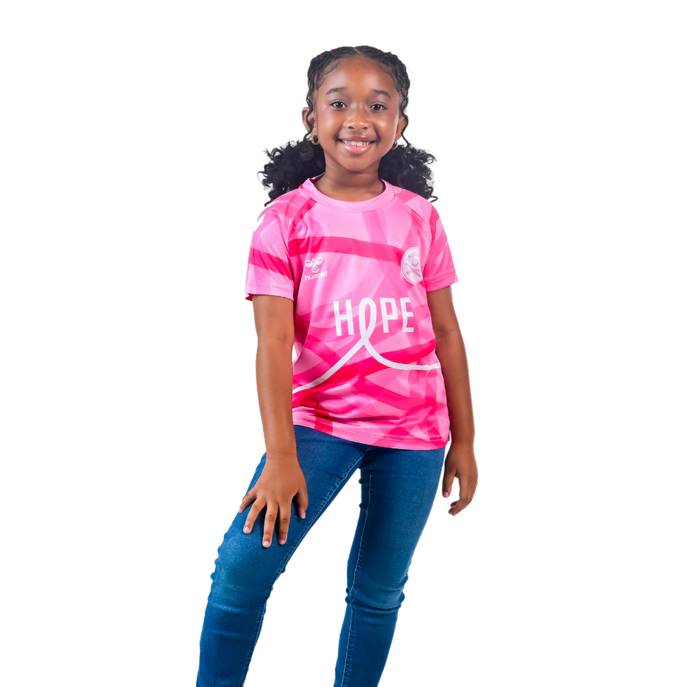 Introducing the Pink Ribbon Warmup Kit, this year’s year’s Breast Cancer Awareness Night warmup top being worn before kickoff of the October 11 match.. The vibrant pink design features an all-over abstract ribbon pattern. Across the chest, the word “HOPE” stands bold, with the ‘O’ reimagined as a white ribbon that continues around the waist. This element symbolizes that whoever wears this kit is wrapped in a ribbon of hope.