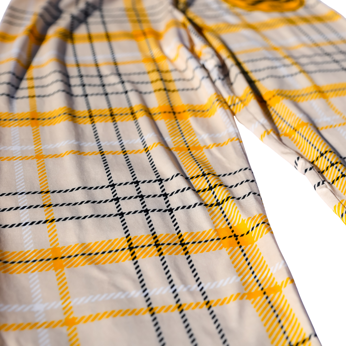 Cozy up Charleston style, these yellow plaid lounge pants feature a relaxed fit, elastic waistband, and signature crest logo for laid-back Lowcountry vibes. Perfect for everyday comfort.