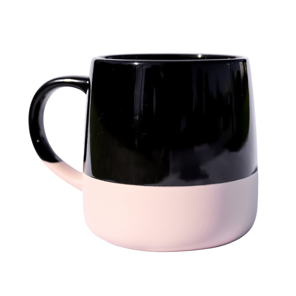 Elevate every sip with the new ceramic mug, a stylish, durable stoneware piece with a bold color-block design. The matte base and glossy top create a earthy contrast that stands out on any table.